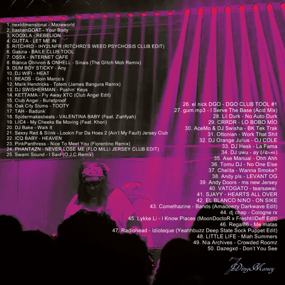 Probably the most accurate depiction of my style to date. A mix of Jersey/Baltimore club, techno, footwork, jungle and more! Extremely blessed to be able to use some tracks from producer homies.